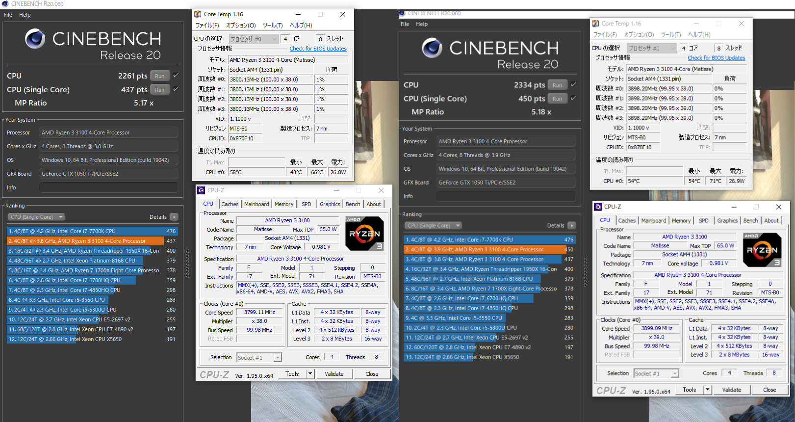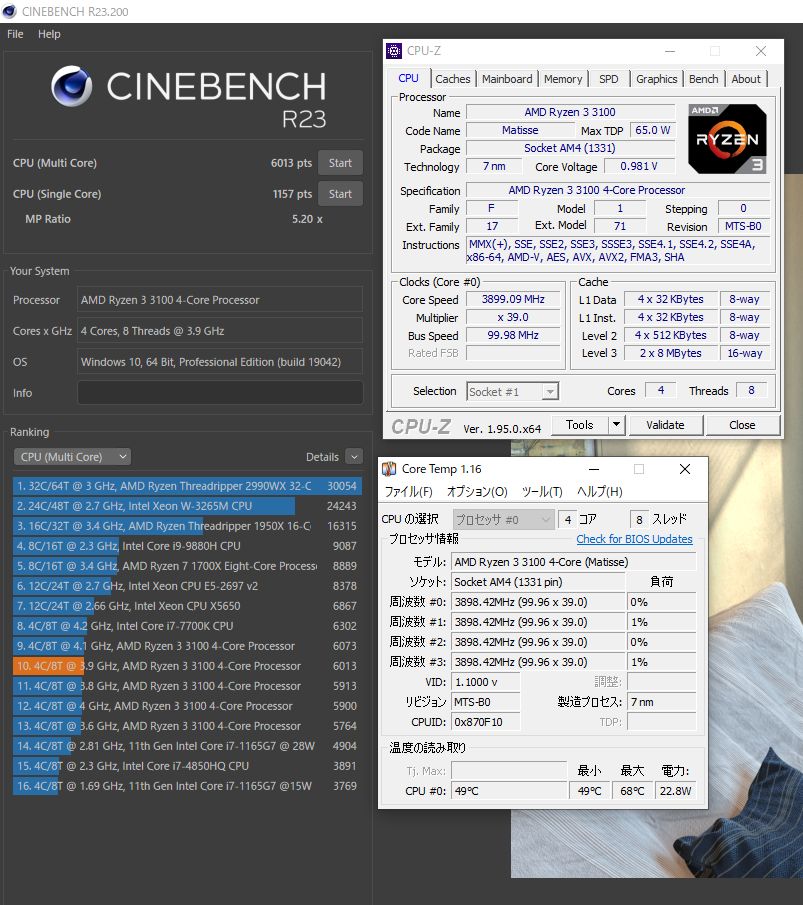 AMD Ryzen 3 3100でクロックを上げて遊んでみました。