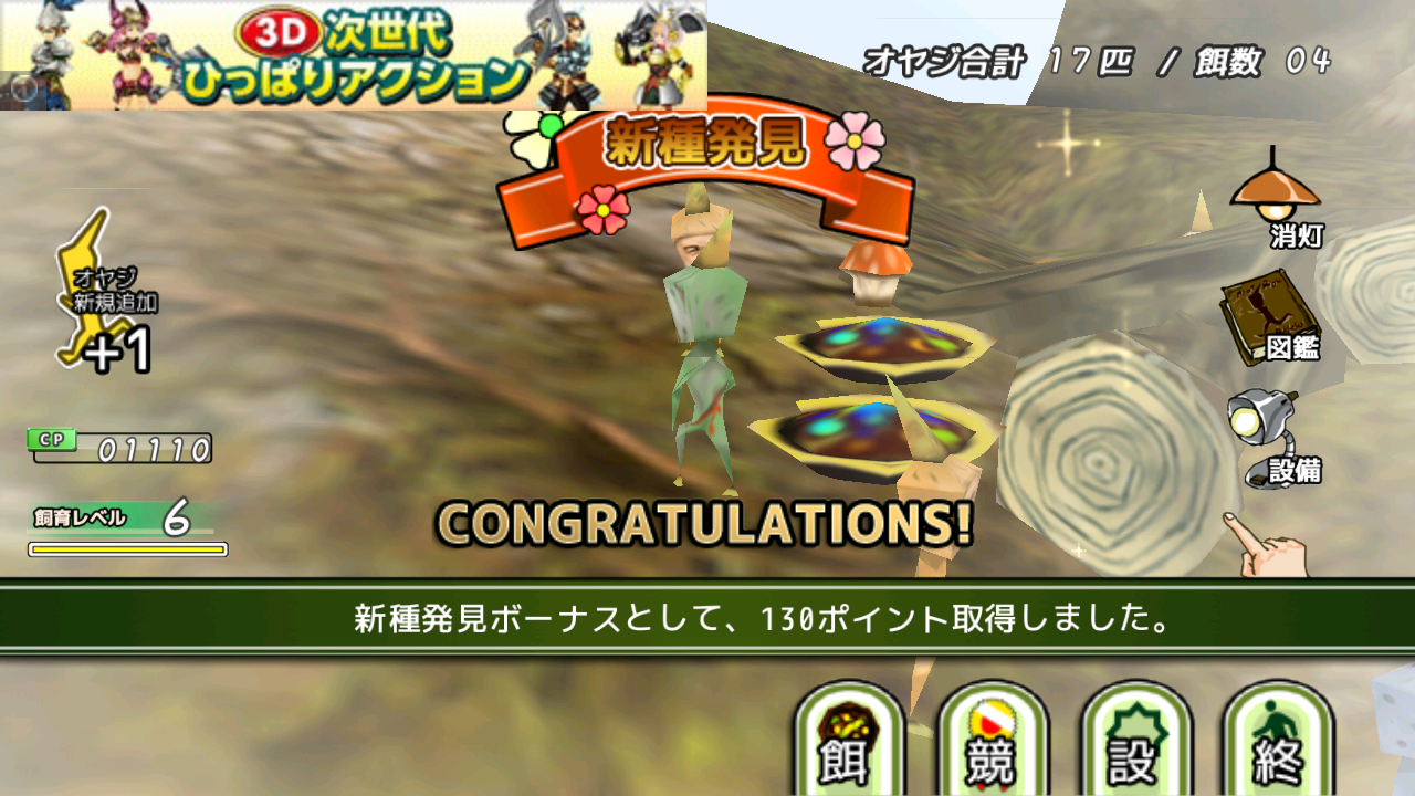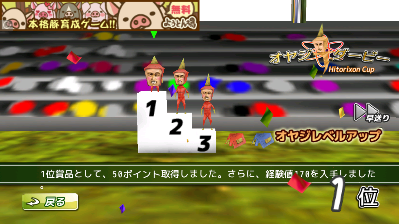 レースに出してオヤジ達のレベル上にポイントが増えていきますが