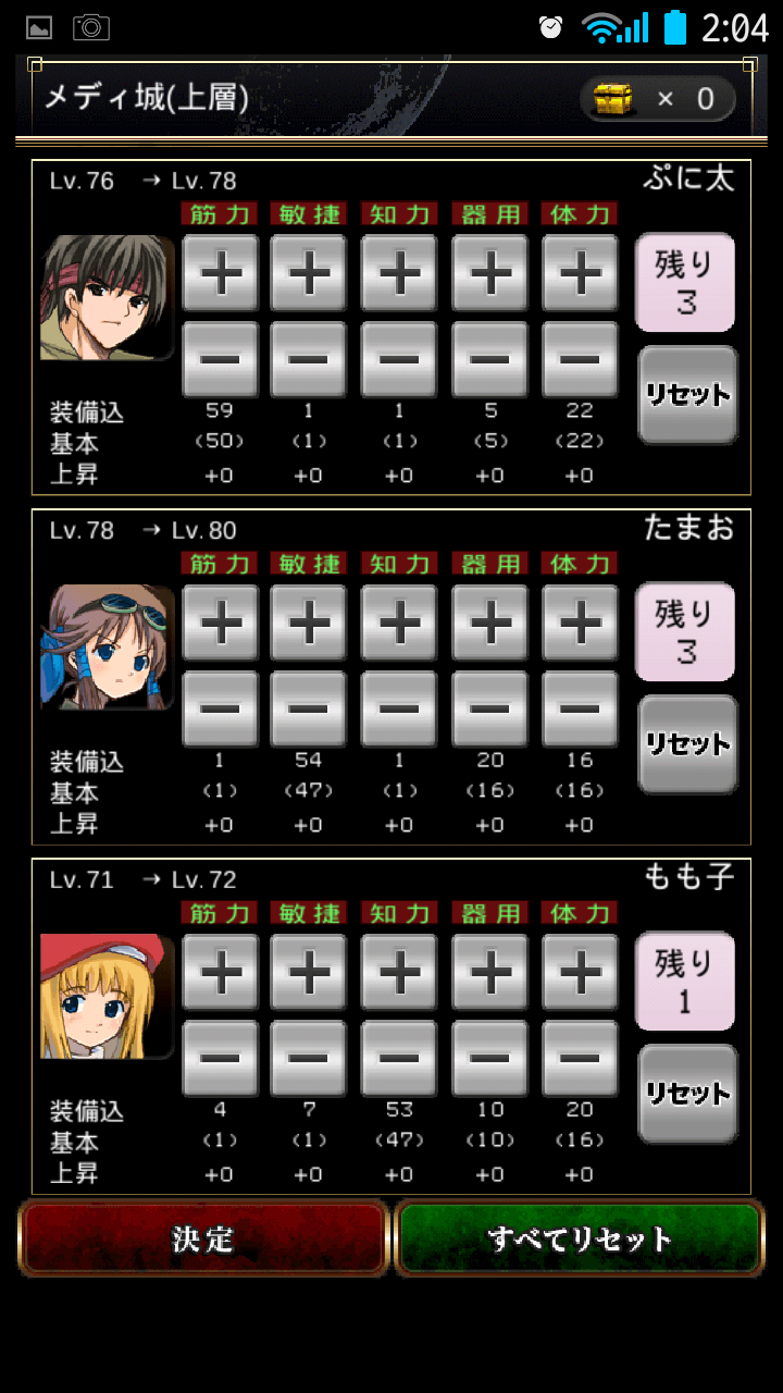 体力はHP、器用は攻撃速度その他に関係するということでどう降ればいいかわかりません^^;