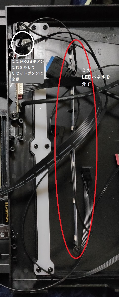 RGBスイッチはグラフィックボードの下のブランケット、多分排気口なんでしょうね、そこに通して下に出しました。